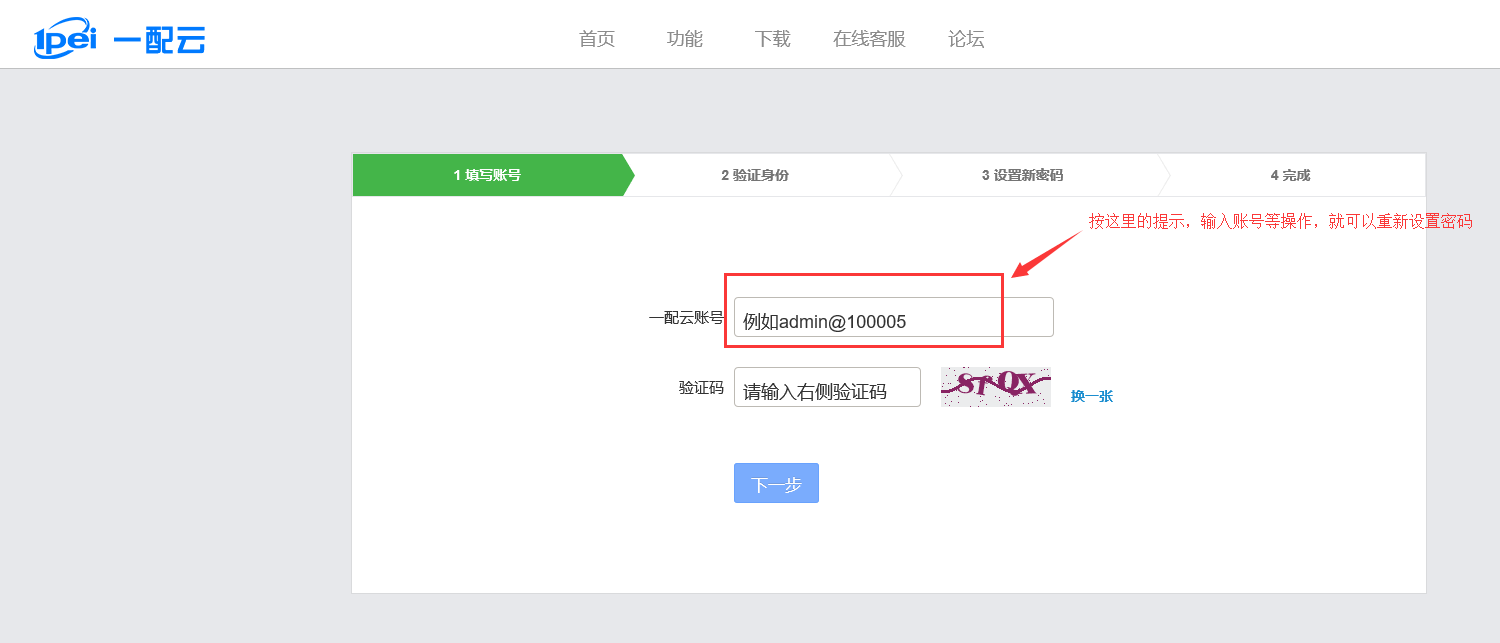 在填写账号界面,输入管理员的账号,按提示信息操作,即可设置新密码。
