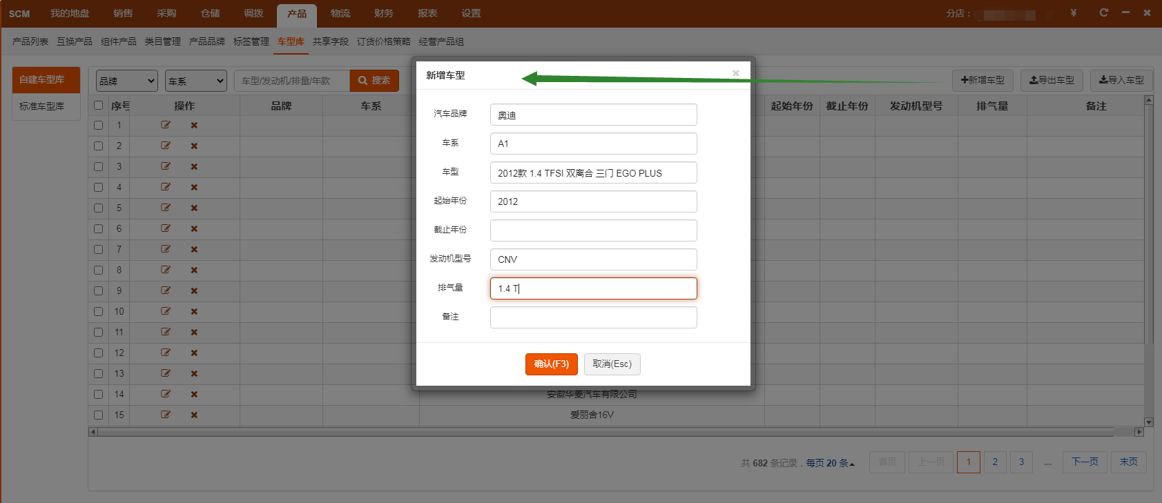 点击右上角的 +新增车型 按钮来新增一个车型到自建车型库中。