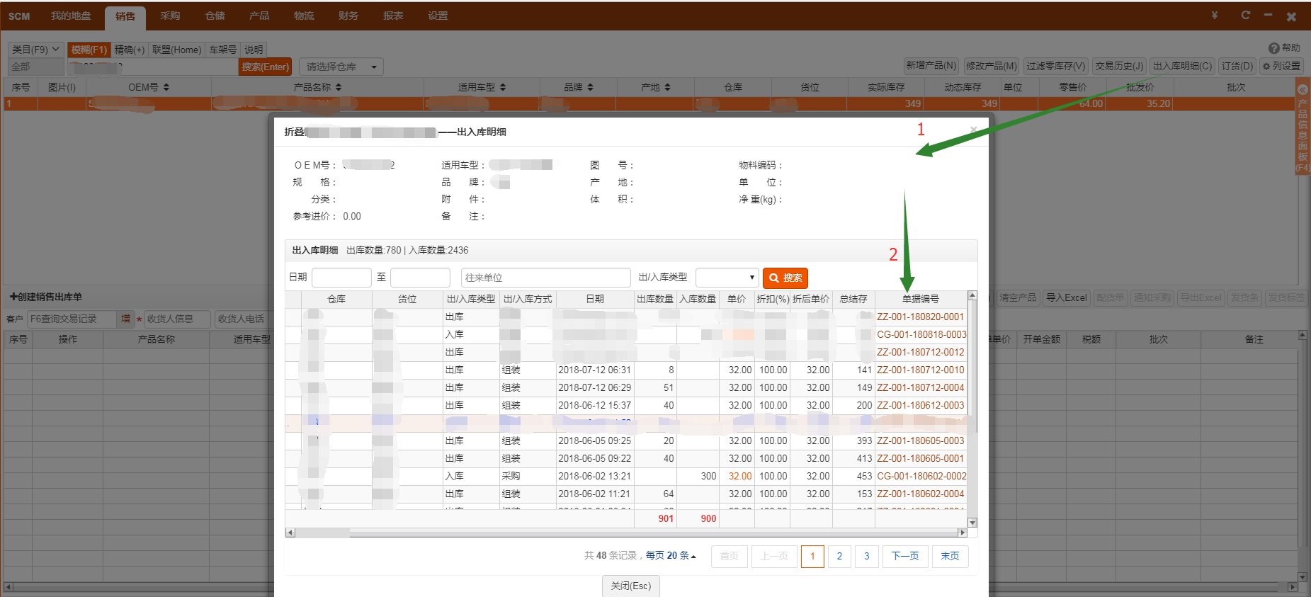 10 . 出入库明细中增加单据编号列,点击链接可查看组装单/拆分单的单据详情。