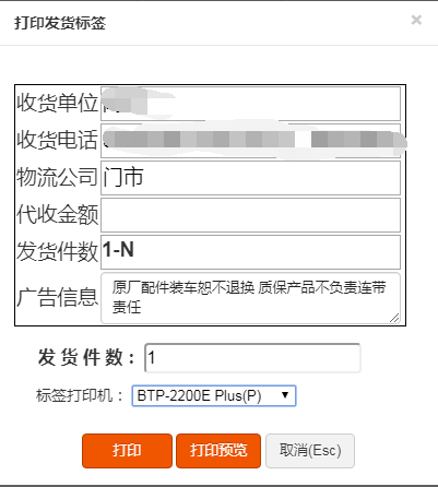 6. 打印发货标签时,增加的自定义内容可以打印出来