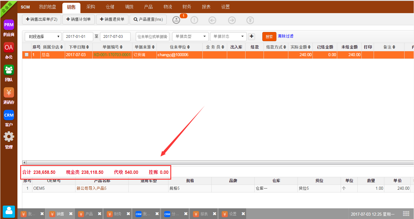 . 盘点开单界面搜索产品缺省按OEM号排序,