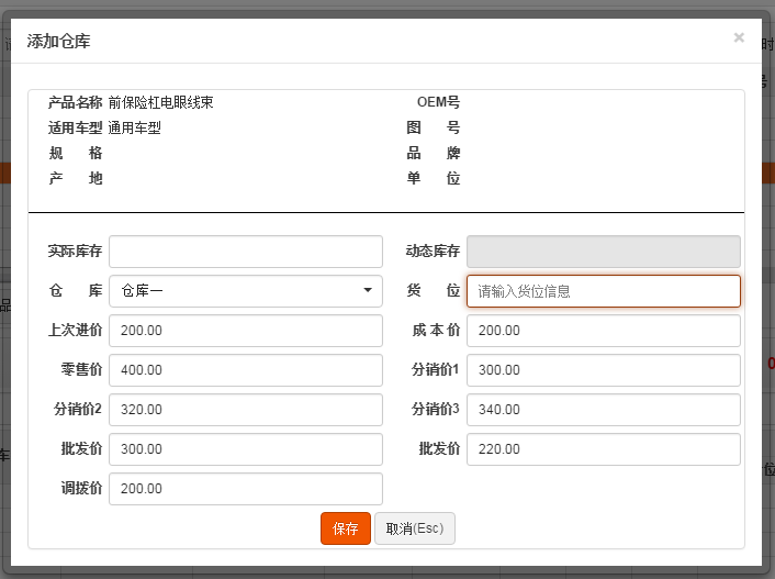 如果遇到同一产品既要放在原仓位,又要放在新仓位上,则可点击新增库存,再建立一条新货位的库存记录:
