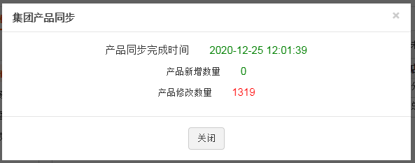 当集团产品完成同步后,会显示本次新增与修改的产品数量。