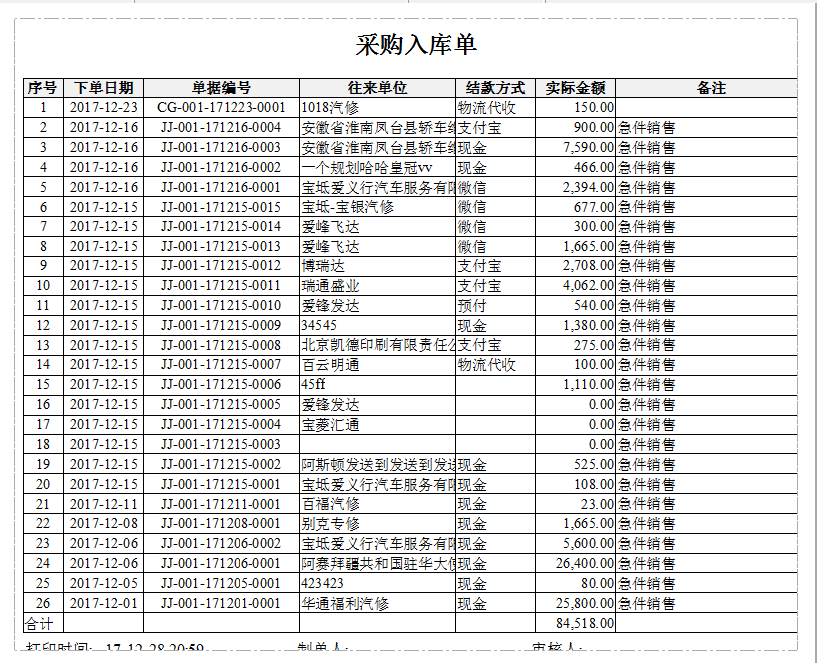 点击单据列表界面右上方的“打印”按钮,即可快速打印单据列表: