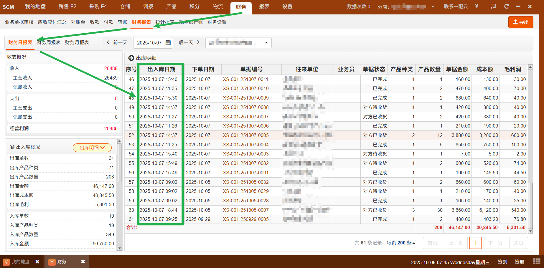 在【按日统计】页面中,默认为本月01-本月今日, 按日期降序排列。
