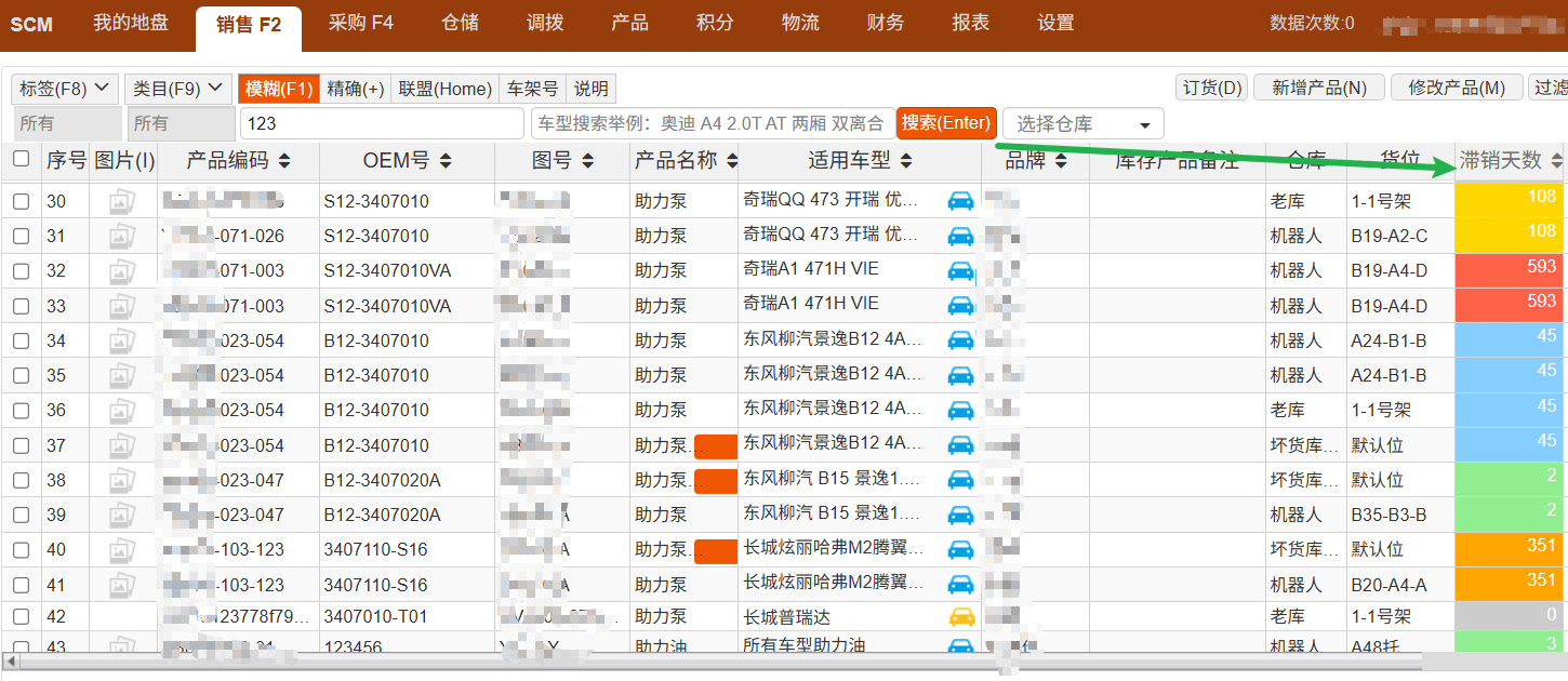 对没有销售记录的产品,滞销天数 = 当天 - 最近一次采购入库日期