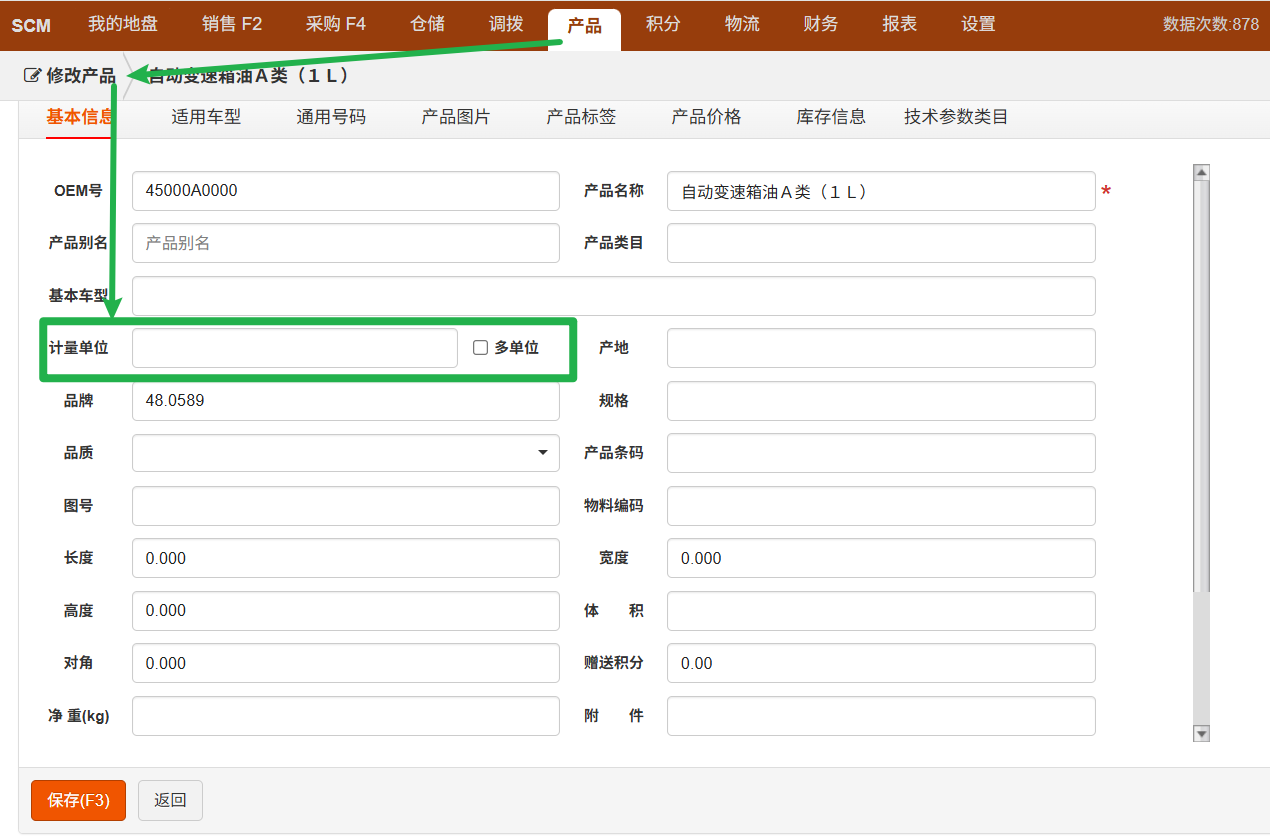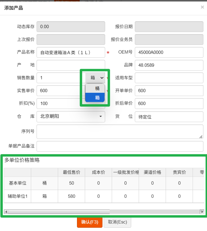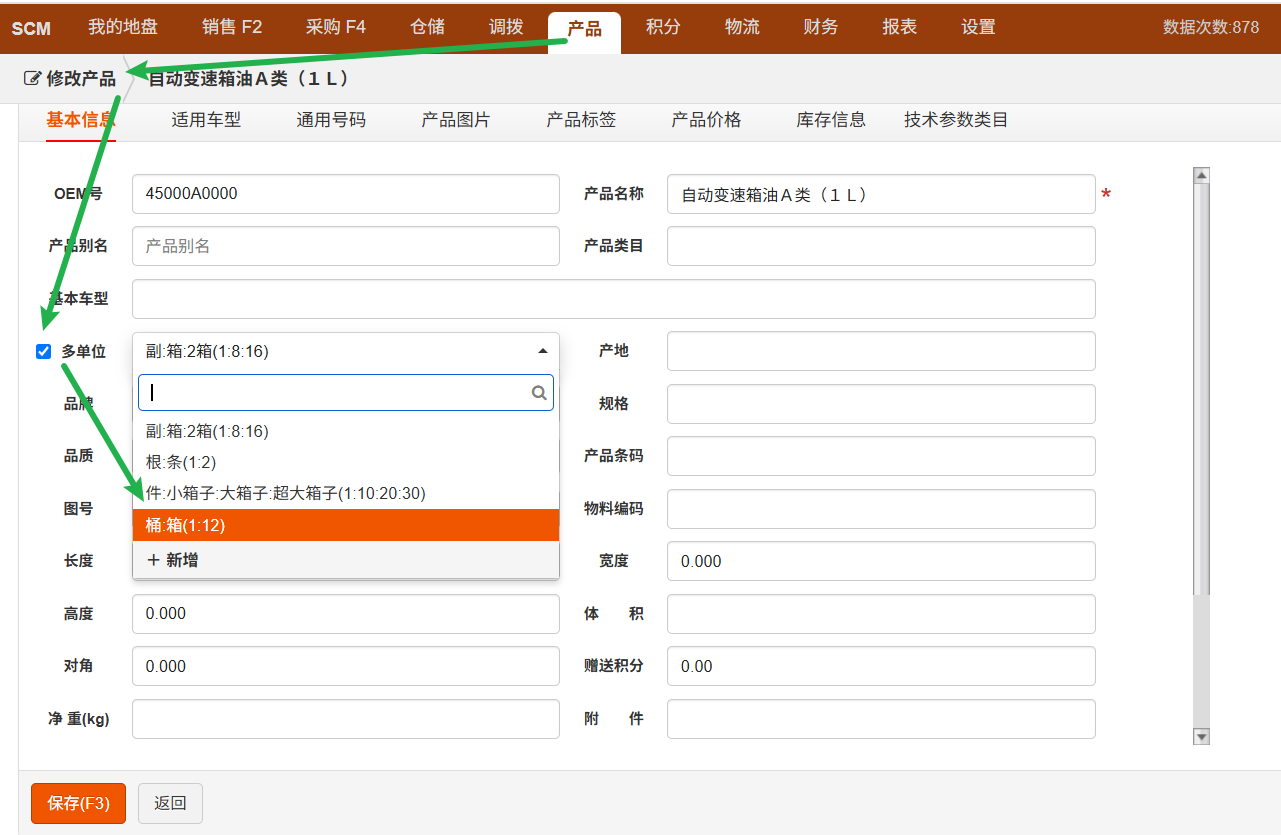 如果某个产品支持多单位,例如油品,可以勾选 【多单位】选项。