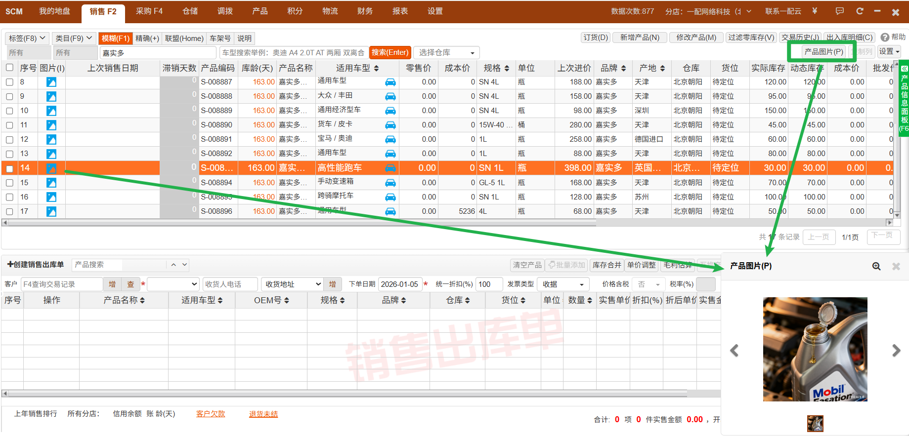 随着产品截图需求的快速增长,在销售/采购开单页面,点击右上角的【产品图片(P)】按钮,在页面右下角显示出产品图片,随着上下键产品变化实时显示出产品图片,以方便给客户快速截图。