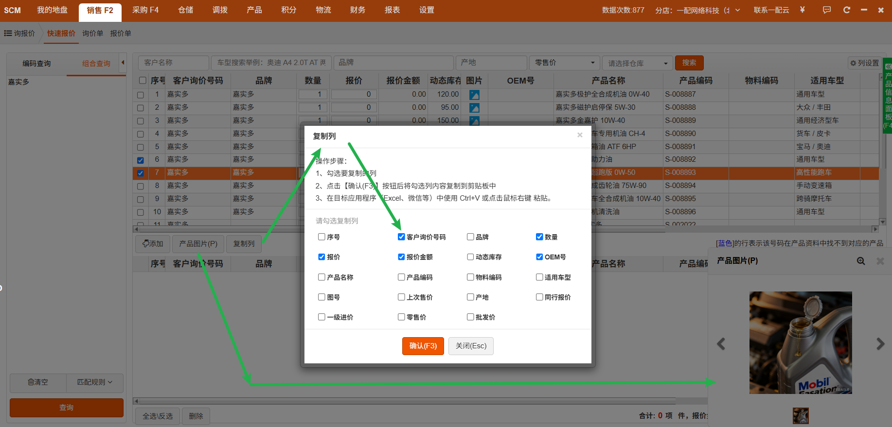 优化5:在上半部分匹配产品列表中,增加 复制列 按钮
